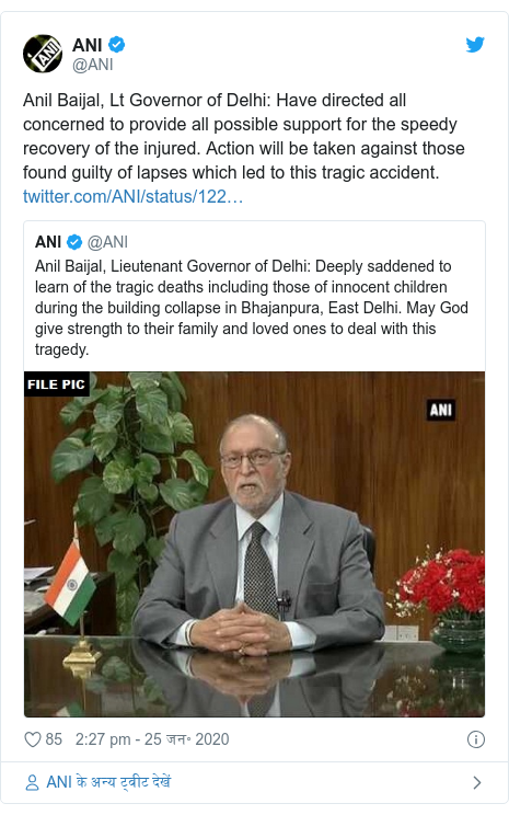 दिल्ली के उपराज्यपाल अनिल बैजल ने कहा है कि इस घटना के लिए जो भी ज़िम्मेदार पाया जाएगा, उसके ख़िलाफ़ सख़्त कार्रवाई की जाएगी.